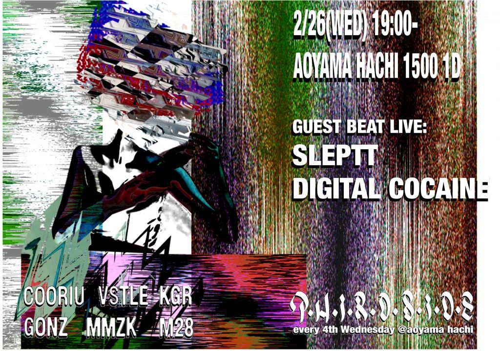 2020.02 26 FEB THIRD SIDE HIPHOP SOUL ALLMIX 0 Shares Facebook Twitter google Line DATE: 2020-02-26 WED OPEN: 19:00 VENUE: PRICE: DOOR: ¥1500/1D LINE UP: ■GUEST BEAT LIVE: SLEPPT DIGITAL COCAINE ■DJs and MCs COORIU KGR VSTLE GONZ M28 DAIKI