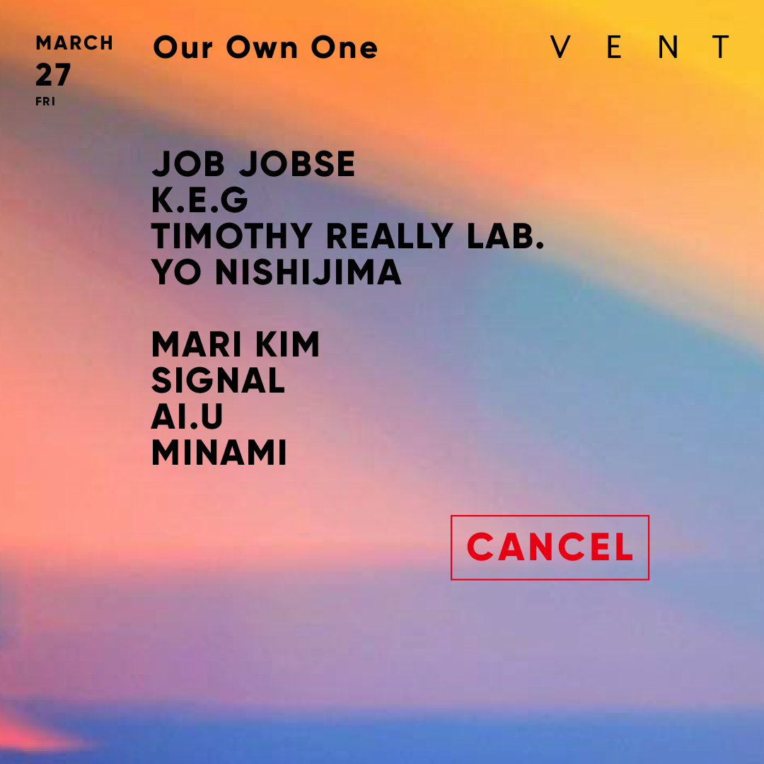 VENTは新型コロナウイルスの感染拡大防止に伴い、3月27日から4月10日までイベントを自粛し営業致しません。