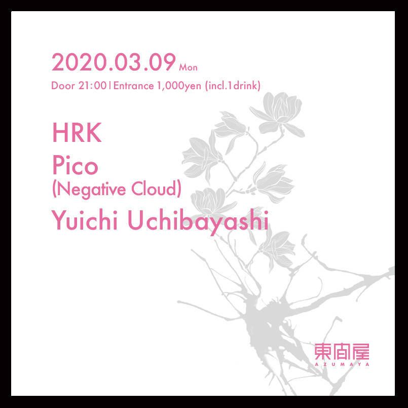 2020.03 09 MAR Azumaya -Monday- HOUSE 0 Shares Facebook Twitter google Line DATE: 2020-03-09 MON OPEN: 21:00 VENUE: PRICE: Entrance 1,000yen(incl. 1drink) LINE UP: HRK Pico (Negative Cloud) Yuichi Uchibayashi