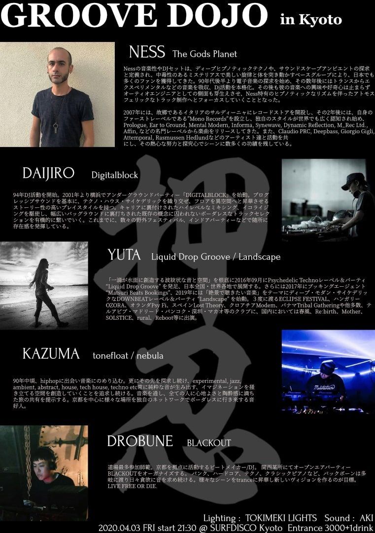 「一滴が水面に創造する波紋状な音と空間」を根底に2016年09月にPsychedelic Technoレーベル&パーティ “Liquid Drop Groove” を発足、レーベル構想の前段階からMarcus Henrikssonと親密であり、NESSが主宰するレーベルTGPとも連携する等、新進気鋭の異端児っぷりを発揮している。