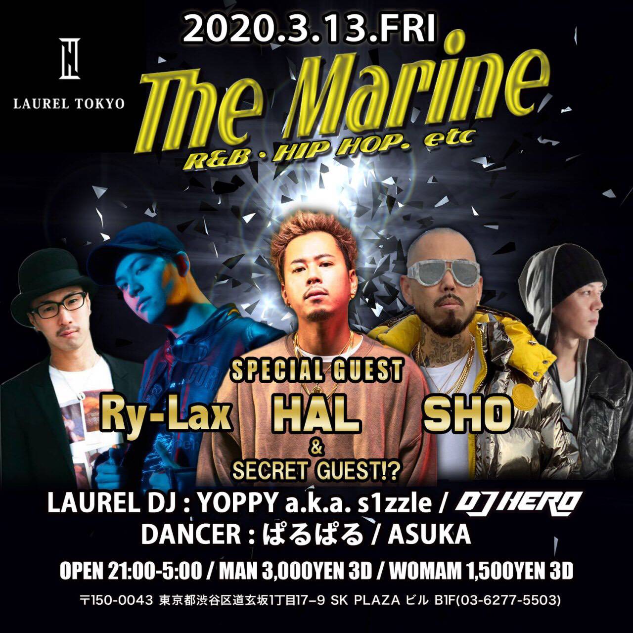 2020.03 13 MAR The Marine EDM ALLMIX R&B 0 Shares Facebook Twitter google Line DATE: 2020-03-13 FRI OPEN: 23:00 VENUE: PRICE: M3000/3D L1500/3D LINE UP: SPECIAL GUEST: Ry-lax HAL SHO