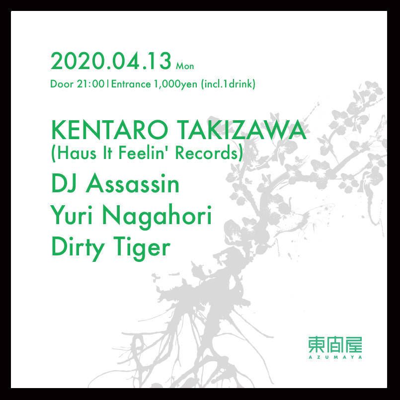 2020.04 13 APR Azumaya -Monday- HOUSE 0 Shares Facebook Twitter google Line DATE: 2020-04-13 MON OPEN: 21:00 VENUE: PRICE: Entrance 1,000yen(incl. 1drink) LINE UP: KENTARO TAKIZAWA (Haus It Feelin' Records) DJ Assassin Yuri Nagahori Dirty Tiger