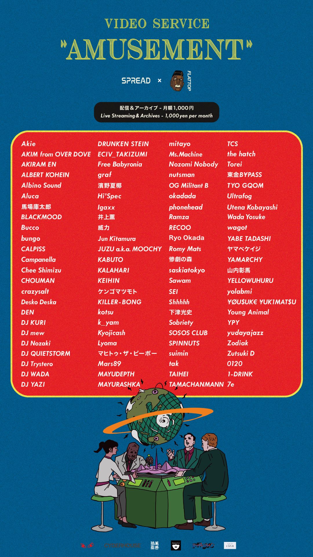 2月末にオープンした “下北沢SPREAD” と、都内を中心に活動するパーティー/レーベル “FLATTOP” がタッグを組んだ、定額制の配信番組 VIDEO SERVICE “AMUSEMENT” が始動!
