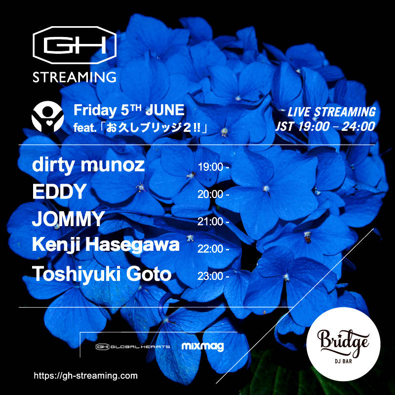 5月に放送したBridgeレジデントDJによる「お久しブリッジ!」が大好評だったため早くも「お久しブリッジ2!」を配信します。ご家族で楽しい夕飯の、ストレス発散おうちでダンスの、さすがに飽きてる在宅勤務の、甘ーいひと時のBGMにも是非!良い音楽はいつもなんでも盛り上げます。いつもご来店してくださるお客様だけでなく、遠方にお住いの方や年齢規制でオールナイトイベントに入場できない方々にも良い音楽をお楽しみ頂けましたら幸いです。