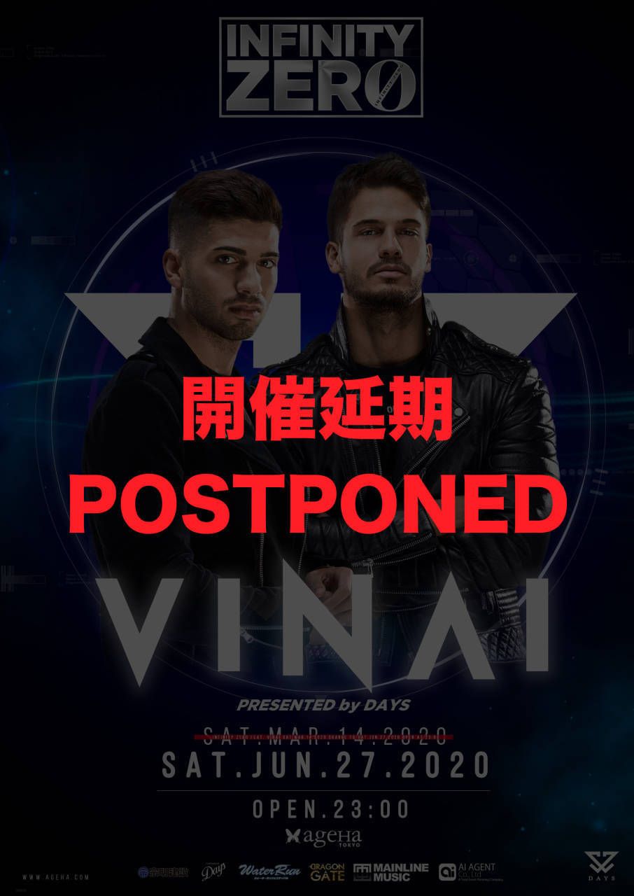 6月27日(土)に開催を予定していました「INFINITY ZERO feat. VINAI Presented by DAYS」公演は、新型コロナウイルスの影響による、お客様の安全と予防・感染拡大抑制を考慮し、またヨーロッパからの渡航制限が未だ解除されておらずアーティストの来日が困難なことから、やむを得ず延期させていただくこととなりました。