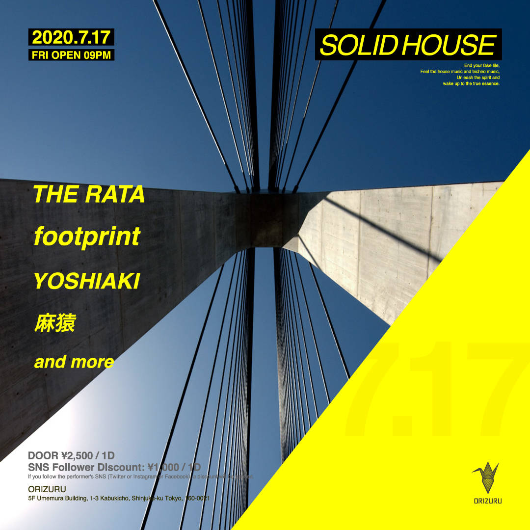 「SOLID HOUSE」はHouse,Technoを中心としたクラブイベントであり、音楽アートのオンラインコミュニティです。全国各地域から選ばれたDJやトラックメイカー、アーティストなどのクリエイティブを世界へ発信していく新しいプロジェクト。旗艦パーティーは各界クリエイターやアーティストが集う異文化社交空間”ORIZURU”で開催。
