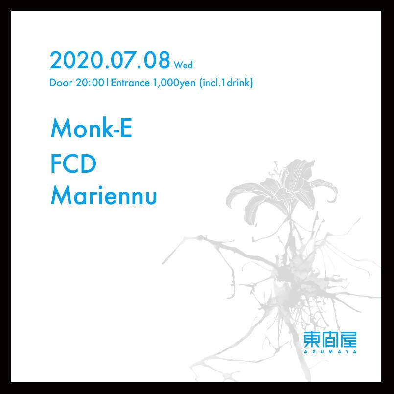 2020.07 08 JUL Azumaya -Wednesday- HOUSE TECHNO 0 Shares Facebook Twitter google Line DATE: 2020-07-08 WED OPEN: 20:00 VENUE: PRICE: Entrance 1,000yen(incl. 1drink) LINE UP: Monk-E FCD Mariennu