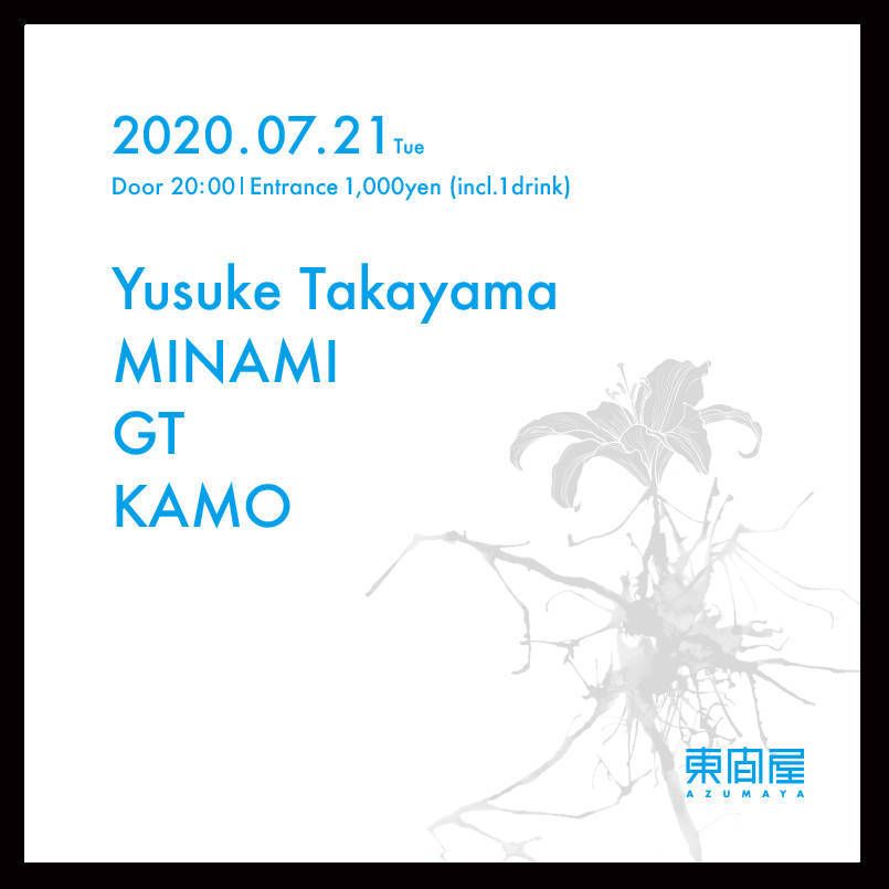 2020.07 21 JUL Azumaya -Tuesday- HOUSE TECHNO 0 Shares Facebook Twitter google Line DATE: 2020-07-21 TUE OPEN: 20:00 VENUE: PRICE: Entrance 1,000yen(incl. 1drink) LINE UP: Yusuke Takayama MINAMI GT KAMO