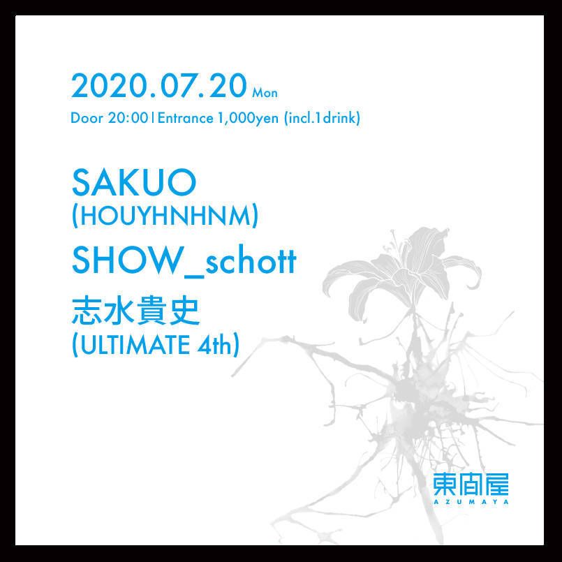 2020.07 20 JUL Azumaya -Monday- HOUSE 0 Shares Facebook Twitter google Line DATE: 2020-07-20 MON OPEN: 20:00 VENUE: PRICE: Entrance 1,000yen(incl. 1drink) LINE UP: SAKUO (HOUYHNHNM) SHOW_schott 志水貴史 (ULTIMATE 4th)