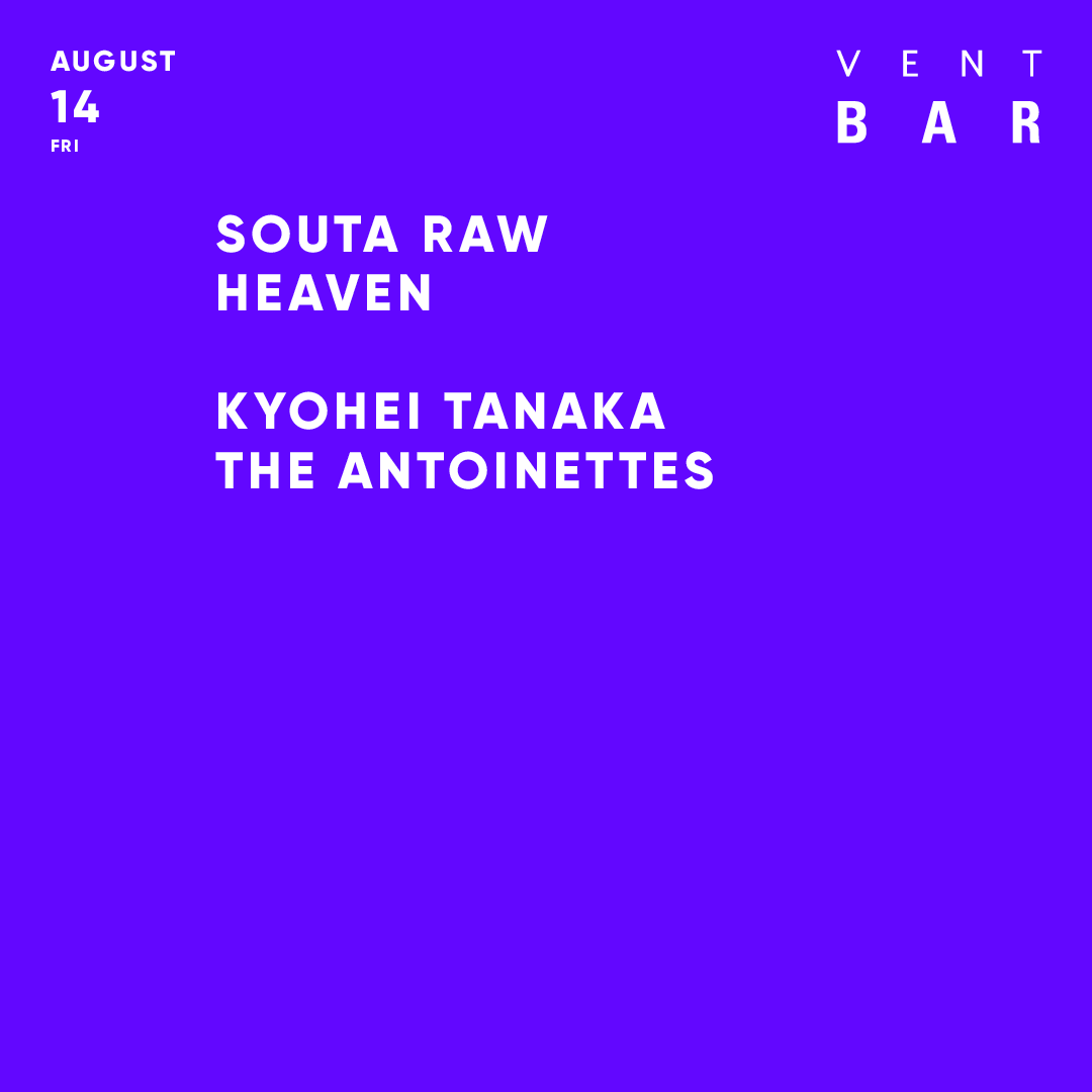【 Souta Raw、HEAVEN、Kyohei Tanaka、The Antoinettesが8月14日のVENT BARに登場 】