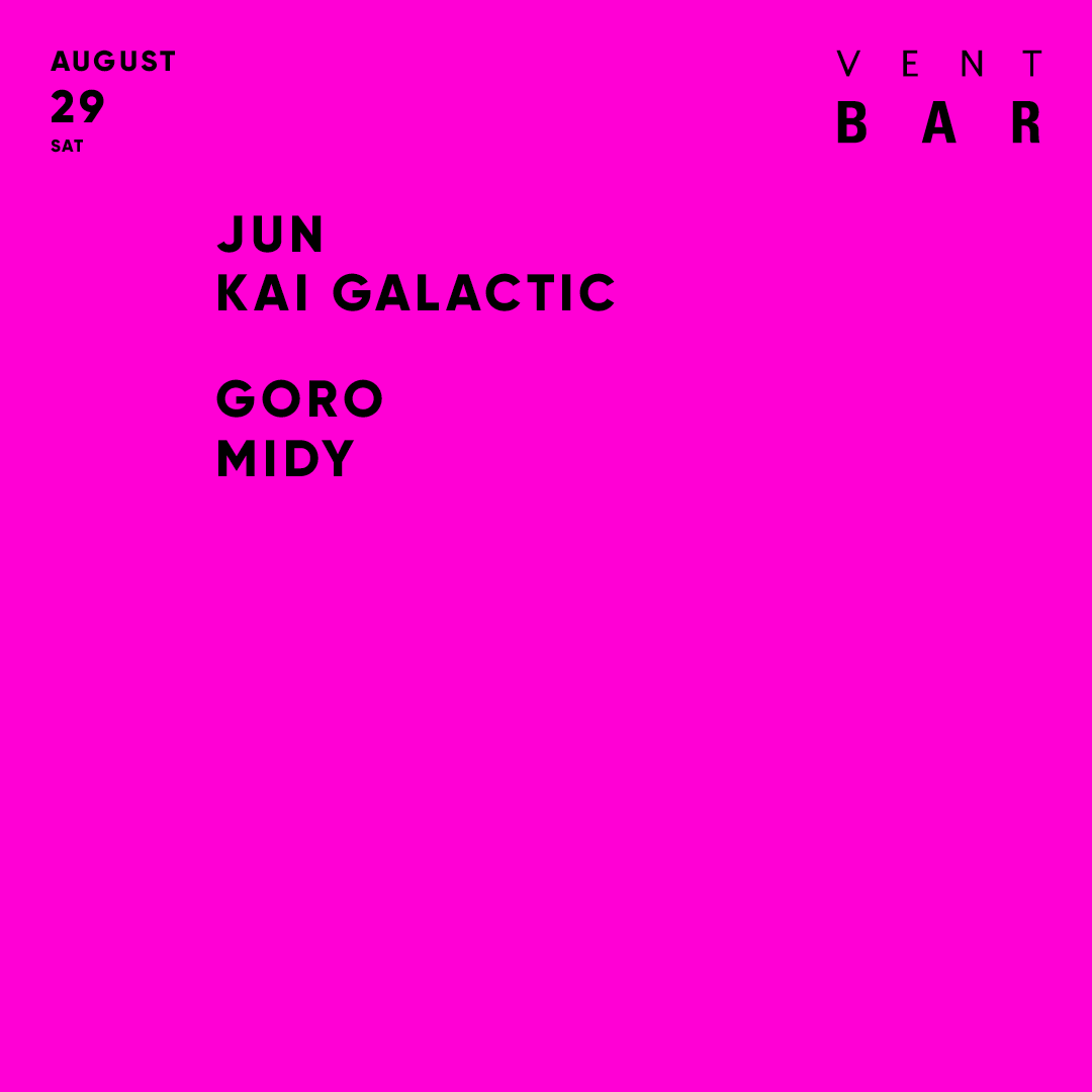 8月29日のVENT BARには、JUN、Kai Galactic、MIDY、GOROが登場!