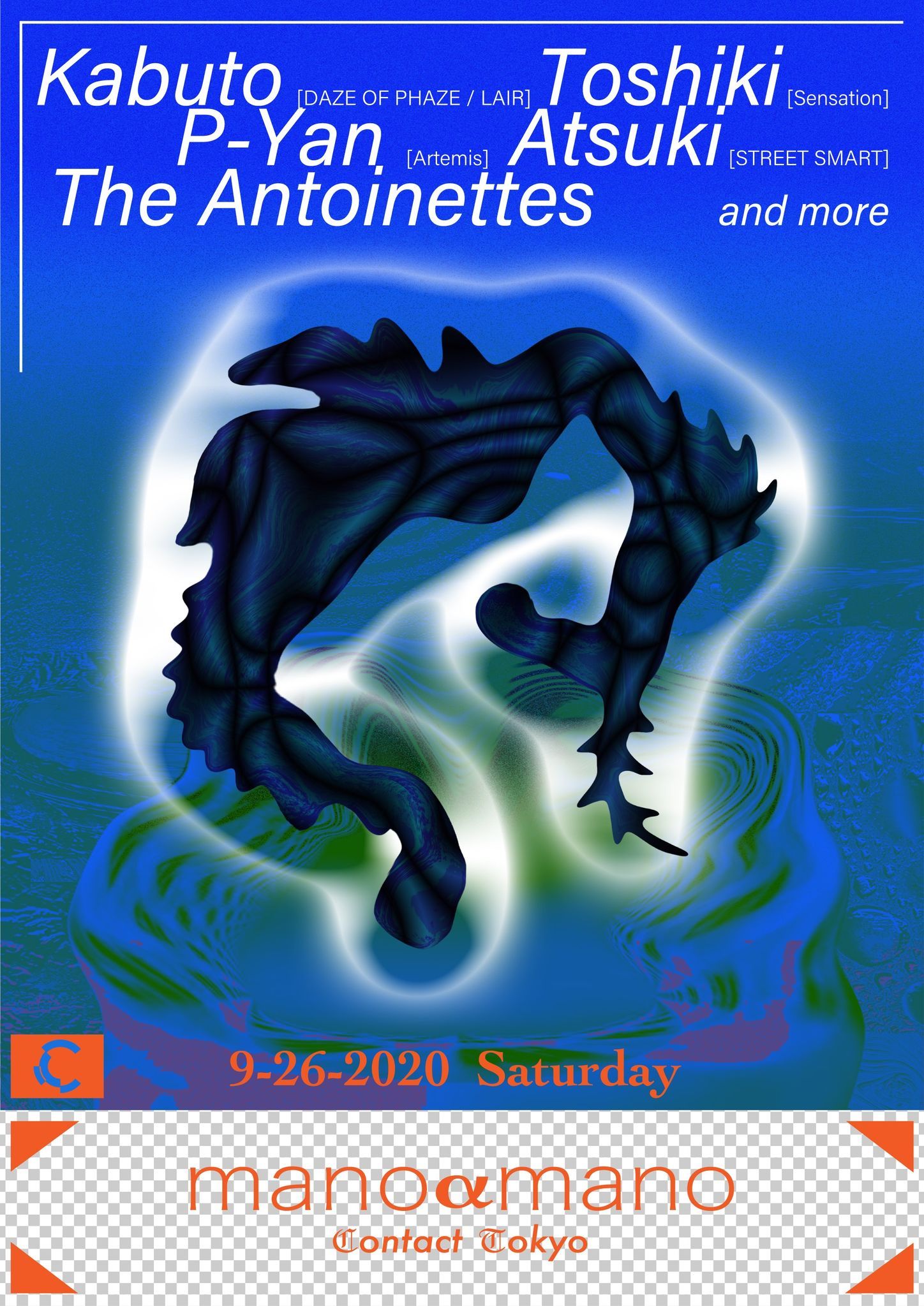 強固な活動基盤を背負う二人のアーティストの音楽交換を楽しむmano a mano第二回。KEIHINと解体新書 Romy Matsという興味深い内容で反響を呼んだ初回に続き、今回Toshiki、Kabutoといったアップアンドカミングな若手と世界からやってくるトップDJ達をも唸らせる実力派の2人を迎える。FUTURE TERRORのオリジナルメンバーとしても知られるKabutoは、yone-koやdj masdaとともに、ミニマルファンの間で語り継がれるパーティCABARETでのレジデントや、質の高いキュレーションで飛躍的に知名度を上げたDaze Of Phazeの主催を務めてきた。一方Toshikiは、昨年ContactにてA Guy Called Geraldを招いて開催されたCHAOSへの出演や、京都を代表するテクノパーティSensationのオーガナイズなどで急速に注目を集めている。世代を異にする二人のトップランカーが開示し合うトラックをメインフロアのサウンドシステムでデザインする濃縮された時間が期待される。Contactフロアでは東京のクラブカルチャーを電子音楽で牽引する鮮やかな進化系テクノ/ハウスが迎える。ミニマルテクノファンのホットスポットSTREET SMARTのオーガナイザーAtsuki、さらにヴィヴィッドな音像を目まぐるしく変遷させるイマジネーションの渦The Antoinettesといった躍動するラインナップはメインフロアと絶妙な二面性を見せそうだ。ダンスミュージックの先端と描いてきた軌道をなぞる豊かな音楽空間が広がる。