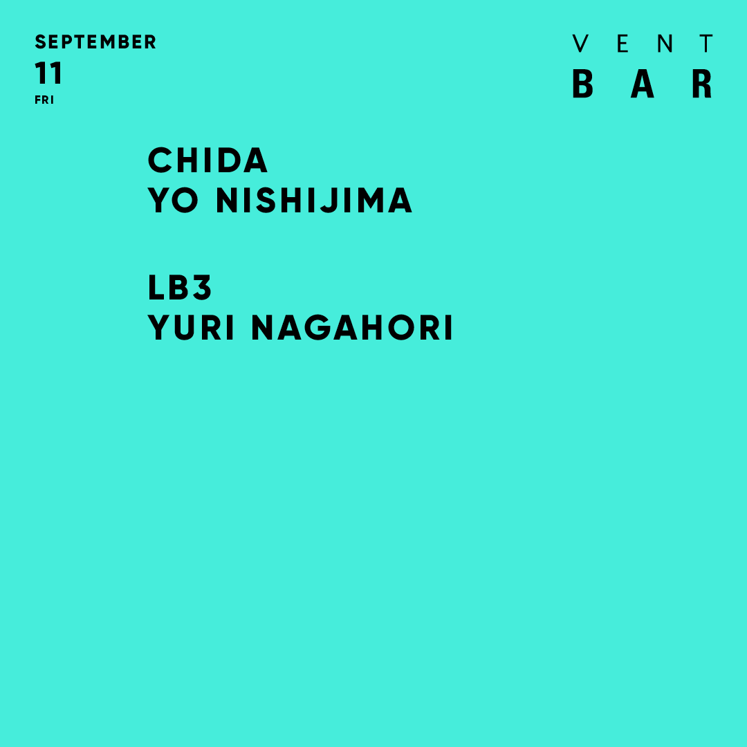9月11日のVENT BARには、CHIDA、Yo Nishijima、LB3、Yuri Nagahoriが登場!