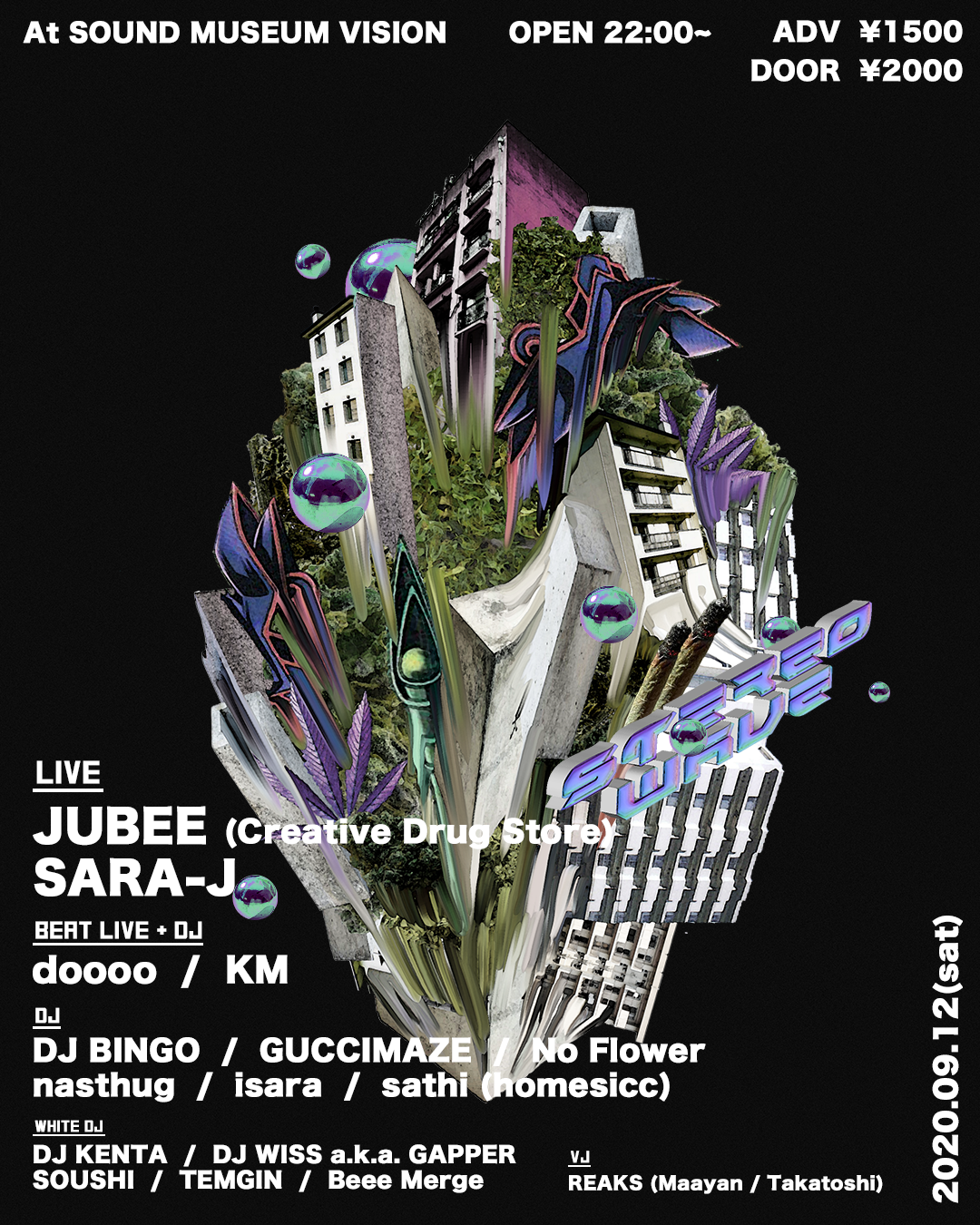 今回はEP『Mass Infection 2』を4月にリリースし、先日ダンス・ミュージック・プロジェクト「Rave Racers」を立ち上げるなど活発に活動するCreative Drug Storeのラッパー/ビートメイカー・JUBEE、収録曲の「Joyride feat. SARA-J」で客演も務めたSARA-Jが揃って登場。