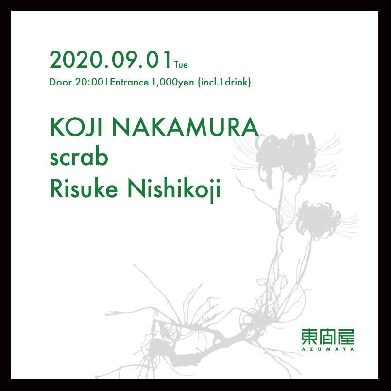 2020.09 01 SEP Azumaya -Tuesday- HOUSE TECHNO 0 Shares Facebook Twitter google Line DATE: 2020-09-01 TUE OPEN: 20:00 VENUE: PRICE: Entrance 1,000yen(incl. 1drink) LINE UP: KOJI NAKAMURA scrab Risuke Nishikoji