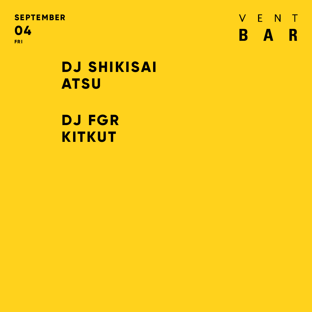 9月4日のVENT BARには、DJ SHIKISAI、ATSU、DJ FGR、KITKUTが登場!