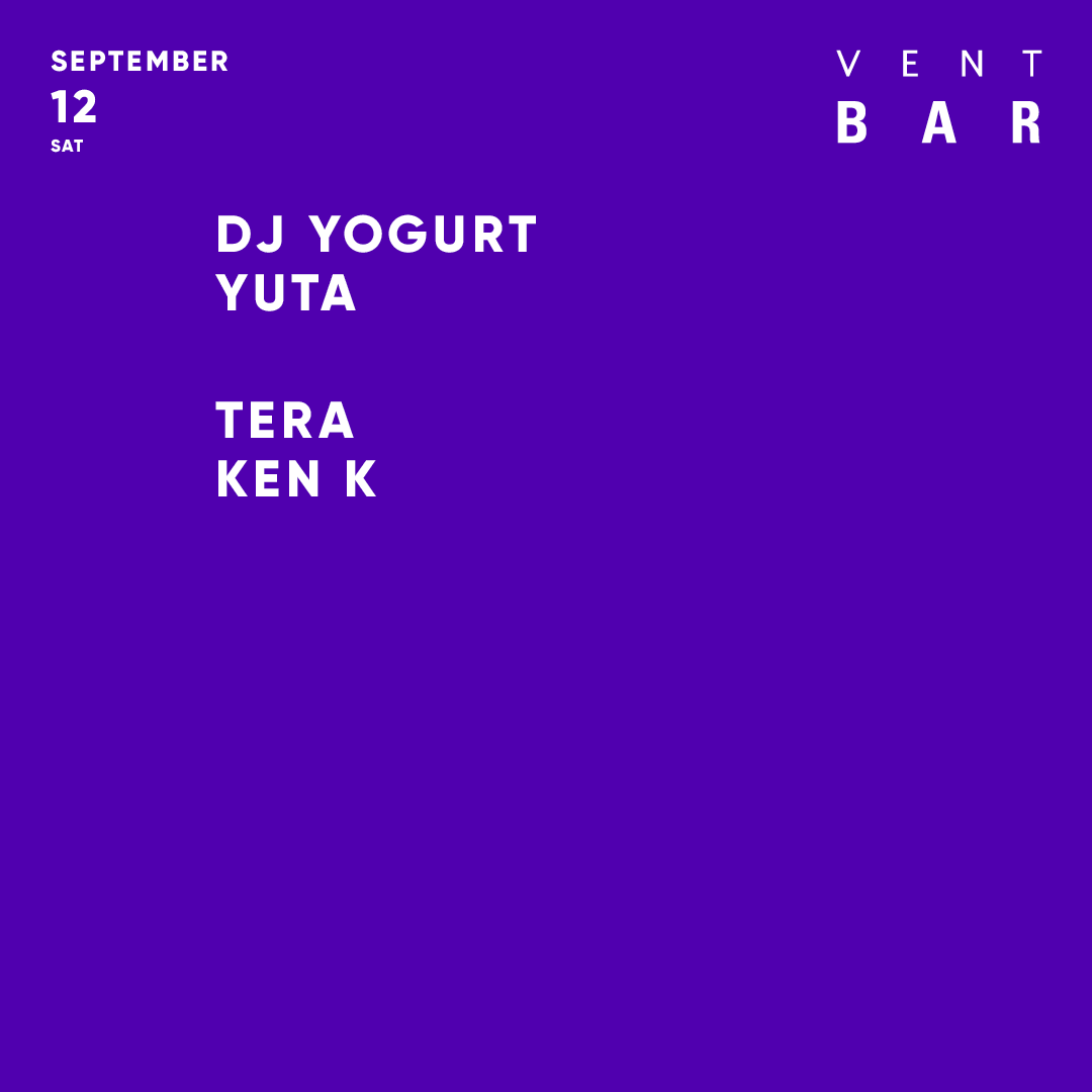 9月12日のVENT BARには、DJ YOGURT、YUTA、TERA、KEN Kが登場!