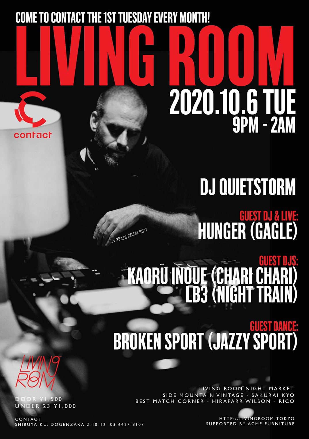 DJ Quietstorm、Nao、ドミンゴ企画、KEEE! が主催する、毎月第1火曜日のレギュラーパーティLIVING ROOM™ (https://livingroom.tokyo/)。