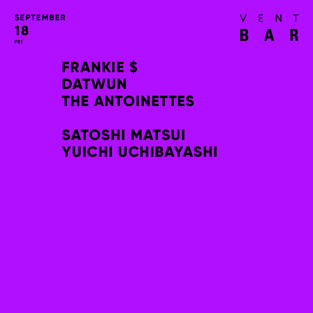 9月18日のVENT BARには、Frankie $、Datwun、The Antoinettes、SATOSHI MATSUI、Yuichi Uchibayashiが登場!