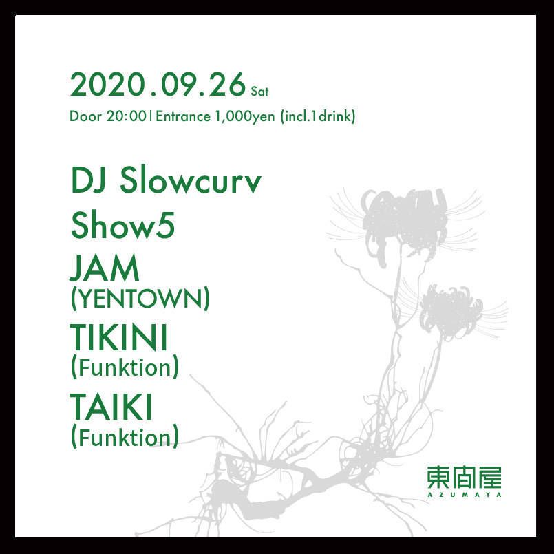 2020.09 26 SEP Azumaya -Saturday HOUSE 0 Shares Facebook Twitter google Line DATE: 2020-09-26 SAT OPEN: 20:00 VENUE: PRICE: Entrance 1,000yen(incl. 1drink) LINE UP: DJ Slowcurv Show5 JAM (YENTOWN) TIKINI (Funktion) TAIKI (Funktion)