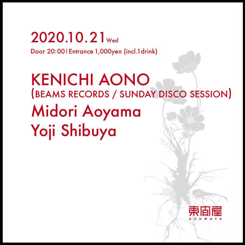 2020.10 21 OCT Azumaya -Wednesday- HOUSE 0 Shares Facebook Twitter google Line DATE: 2020-10-21 WED OPEN: 20:00 VENUE: PRICE: Entrance 1,000yen(incl. 1drink) LINE UP: KENICHI AONO (BEAMS RECORDS / SUNDAY DISCO SESSION) Midori Aoyama Yoji Shibuya