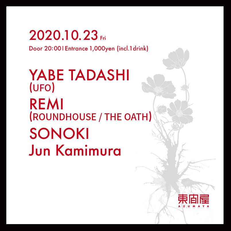 2020.10 23 OCT Azumaya -Friday- HOUSE 0 Shares Facebook Twitter google Line DATE: 2020-10-23 FRI OPEN: 20:00 VENUE: PRICE: Entrance 1,000yen(incl. 1drink) LINE UP: YABE TADASHI (UFO) REMI (ROUNDHOUSE / THE OATH) SONOKI Jun Kamimura