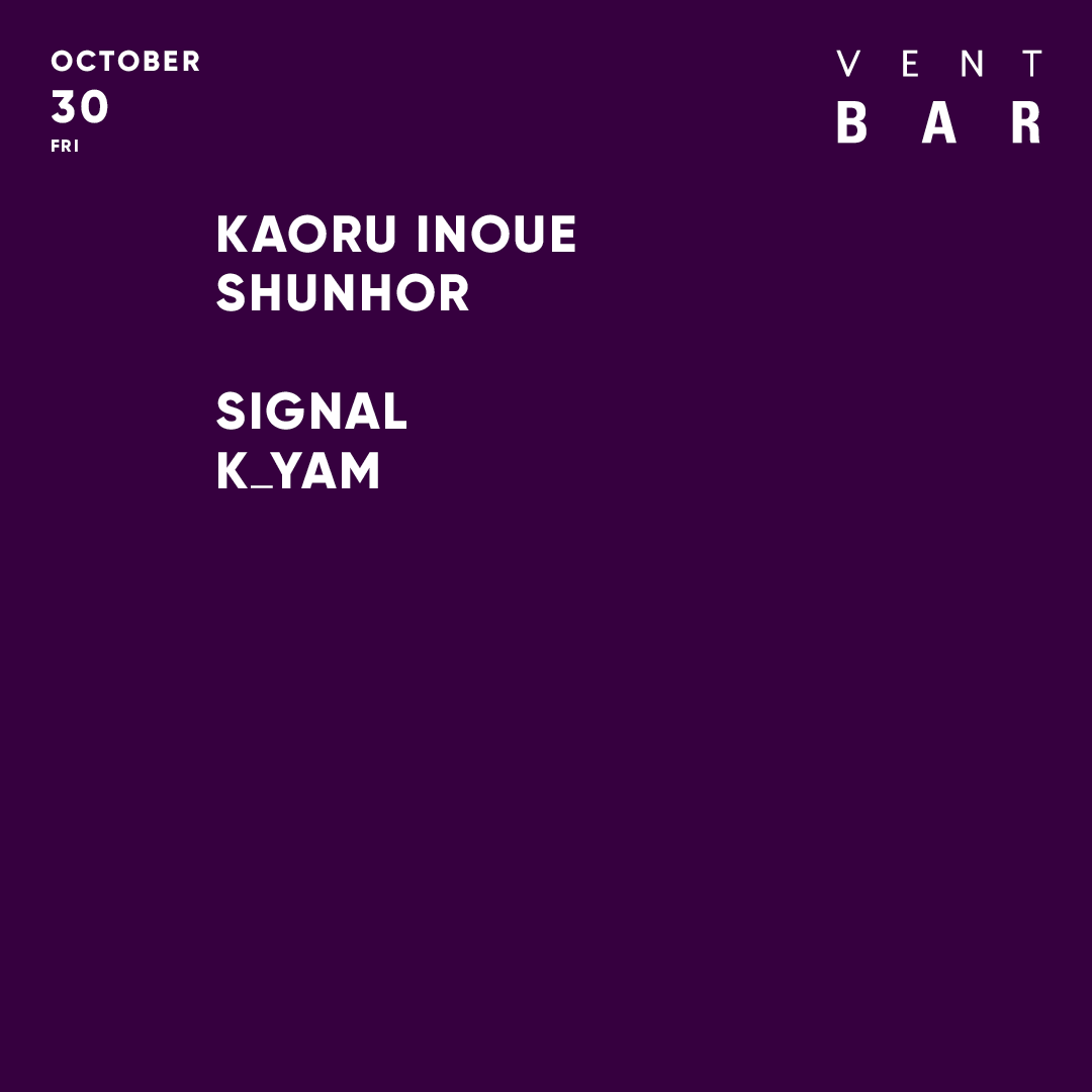 【 Kaoru Inoue、shunhor、SIGNAL、k_yamが10月30日のVENT BARに登場! 】
