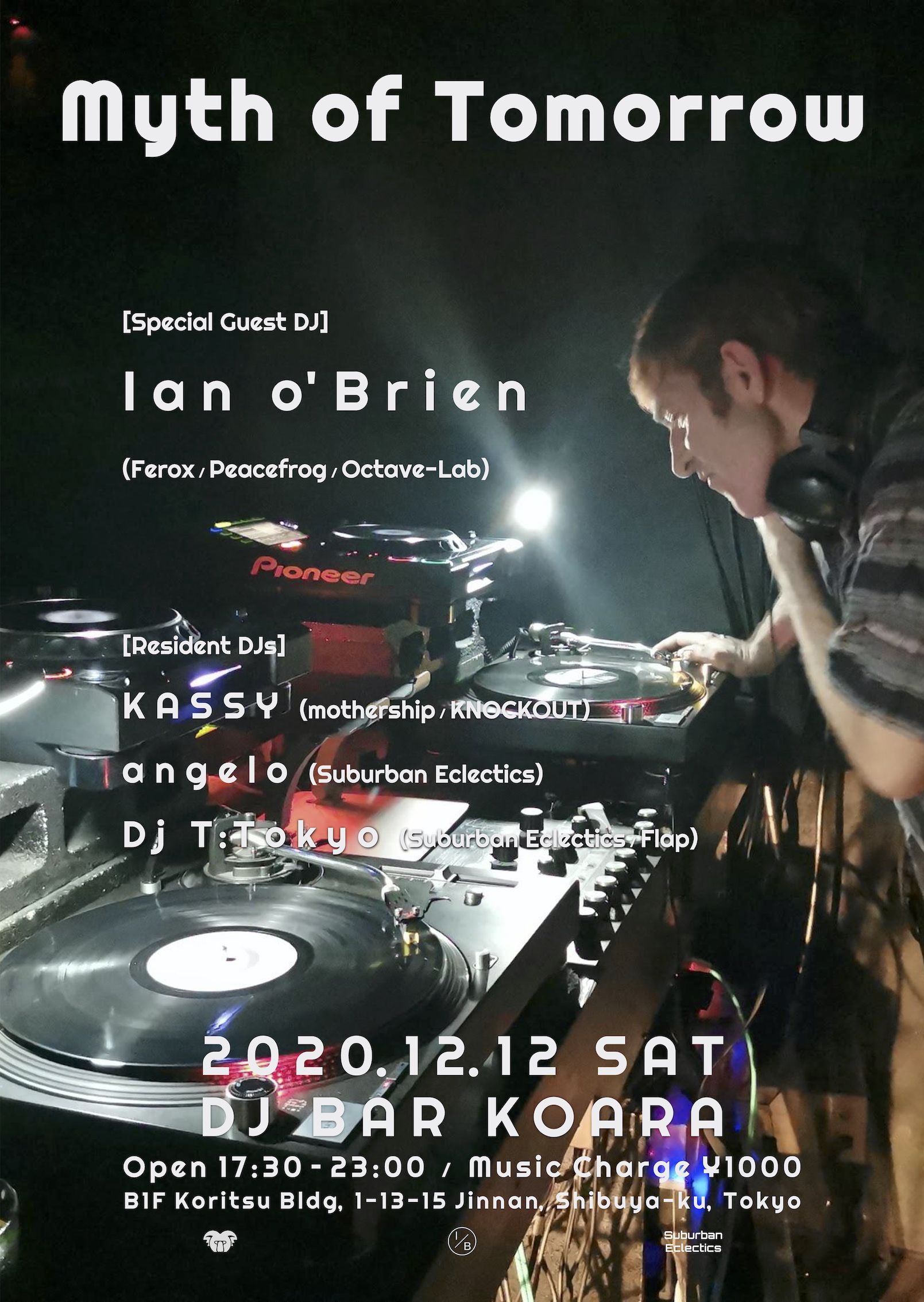 イアン・オブライアンが一年半ぶりにスペシャルゲストDJとして出演する「Myth of Tomorrow」は、東京を拠点に活動しているDJユニット、Suburban Eclectics が DJ BAR KOARA でスタートさせたイベントで、今回が第3回目の開催となる。