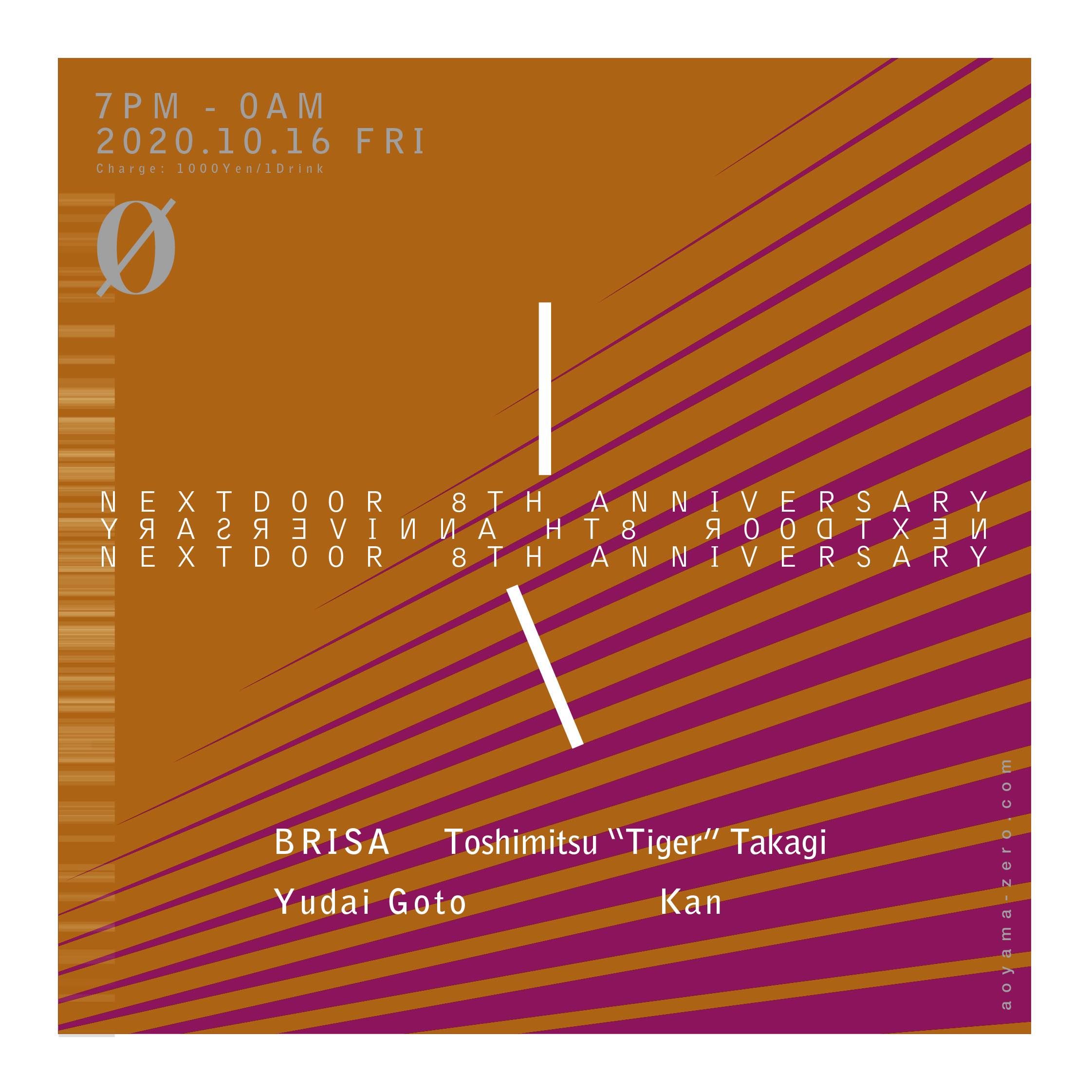 10月16日金曜日のNXTDOORは、前回、前々回に続き感染症対策を行った上での24時までのバースタイル制限開催ですが、そんな中でも歩みを前に進める意思も込めて8周年と冠して開催します。 DJ陣も前回に続きメインレギュラー陣揃って出演。また無制限でパーティーを展開できるその日までゾーン一杯に振り幅を使いつつ前進する選曲姿勢は崩さず時間と空間を作っていきます。 このご時世だからこそ記憶に残る数時間、是非来られた方々と共有したいと思います。