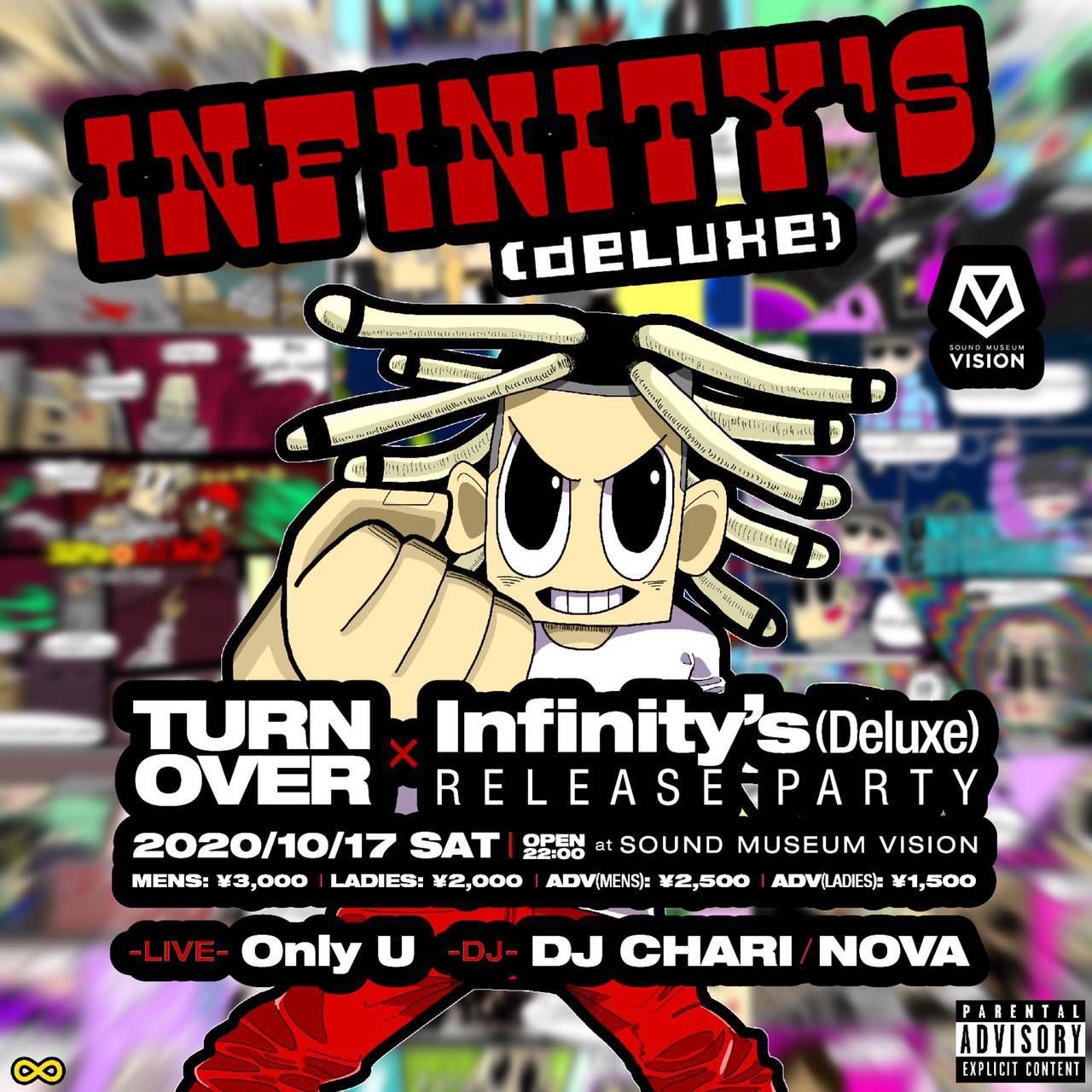 全22曲のフルアルバムで、親交の深いLEXやYung sticky wom、Duke of Harajuku、XY GENE、HEZRONなどがアルバムに参加している。多数のアーティストとのコラボと、全22曲というボリュームの楽曲はハードなトラップからメロウな曲まで、更には四つ打ちの上での軽快なラップなど、Only Uの様々な顔を引き出している。そんなOnly Uが、DJ CHARIがレジデントを務める奇数週の土曜日開催の大人気HIPHOP PARTY 『TURN OVER 』× Infinity’s (Deluxe) RELEASE PARYが決定!!!