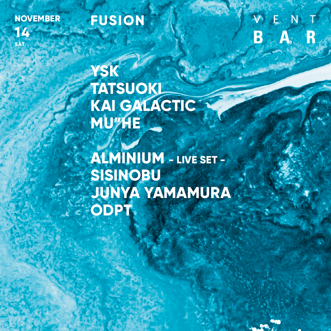 FUSIONは今年3月に第3回目となるパーティを行い約8ヶ月振りの開催となる。これまでには海外からStenny、DeepbassやDelta Funktionenを招聘し、IDM、ブレイクビーツ、エレクトロ、ディープテクノなどジャンルに捕われないラインナップでVENTを代表するパーティとして成長してきた。4回目の開催となる今回は福岡からディープテクノPodcast”Undulate”主宰のYSKと東京から同じく福岡へと拠点を移したTatsuokiをゲストに招聘する。