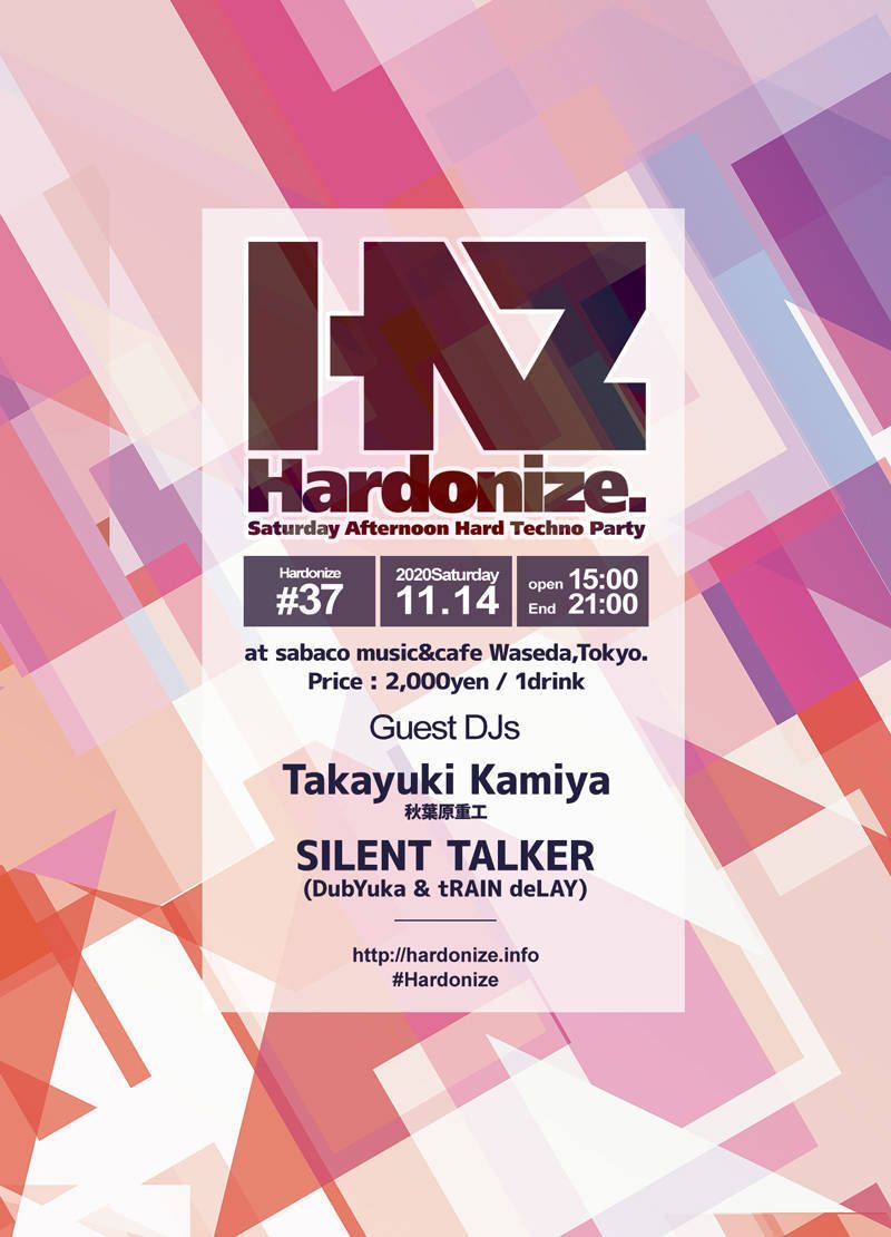今回のゲストは秋葉原重工からTakayuki Kamiya&10/17に発表されるHardonize初の公募企画優勝者、SILENT TALKER (DubYuka & tRAIN deLAY)の2組でお届けします。前回は配信イベントでしたが、今回は入場に上限ありますがフロア開放(予定)です!!およそ8ヶ月ぶりにハードテクノを聞きながらみなさんと楽しくフロアでお会いできることを楽しみにしております!!!