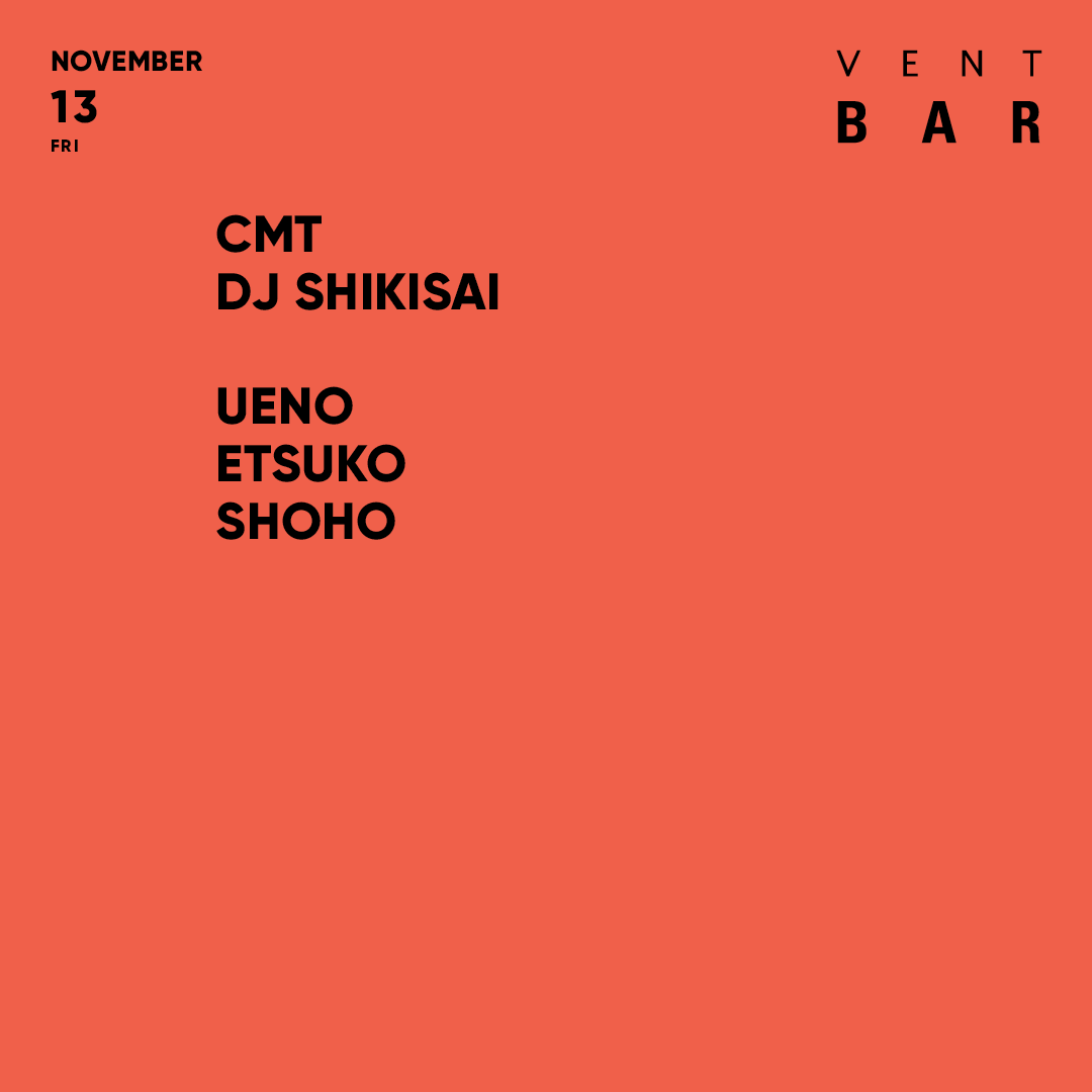 【 11月13日のVENT BARにCMT、DJ SHIKISAI、Ueno、Etsuko、SHOHOが登場 】
