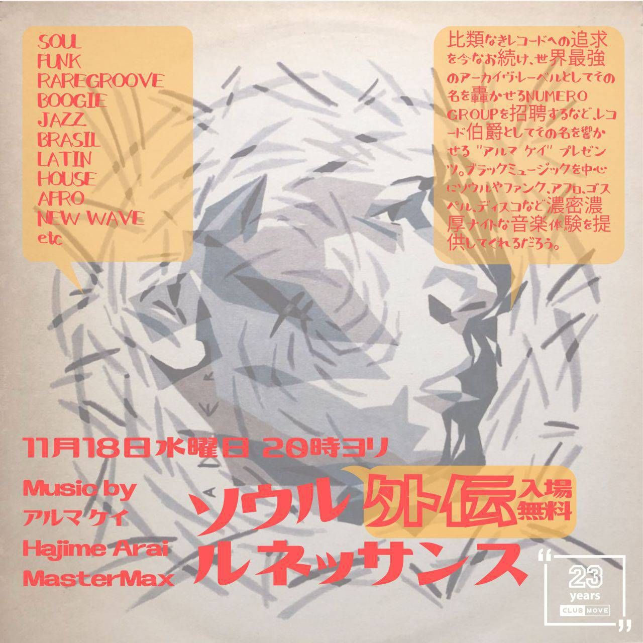 比類なきレコードへの追求を今なお続け、世界最強のアーカイヴ・レーベルとしてその名を轟かせるNUMERO GROUPを招聘するなど、レコード伯爵として一部の間でしられるレコード伯爵こと、 "アルマ ケイ" プレゼンツ。ブラックミュージックを中心にソウルやファンク、アフロ、ゴスペル、ディスコなど濃密濃厚ナイトな音楽体験を提供してくれるだろう。