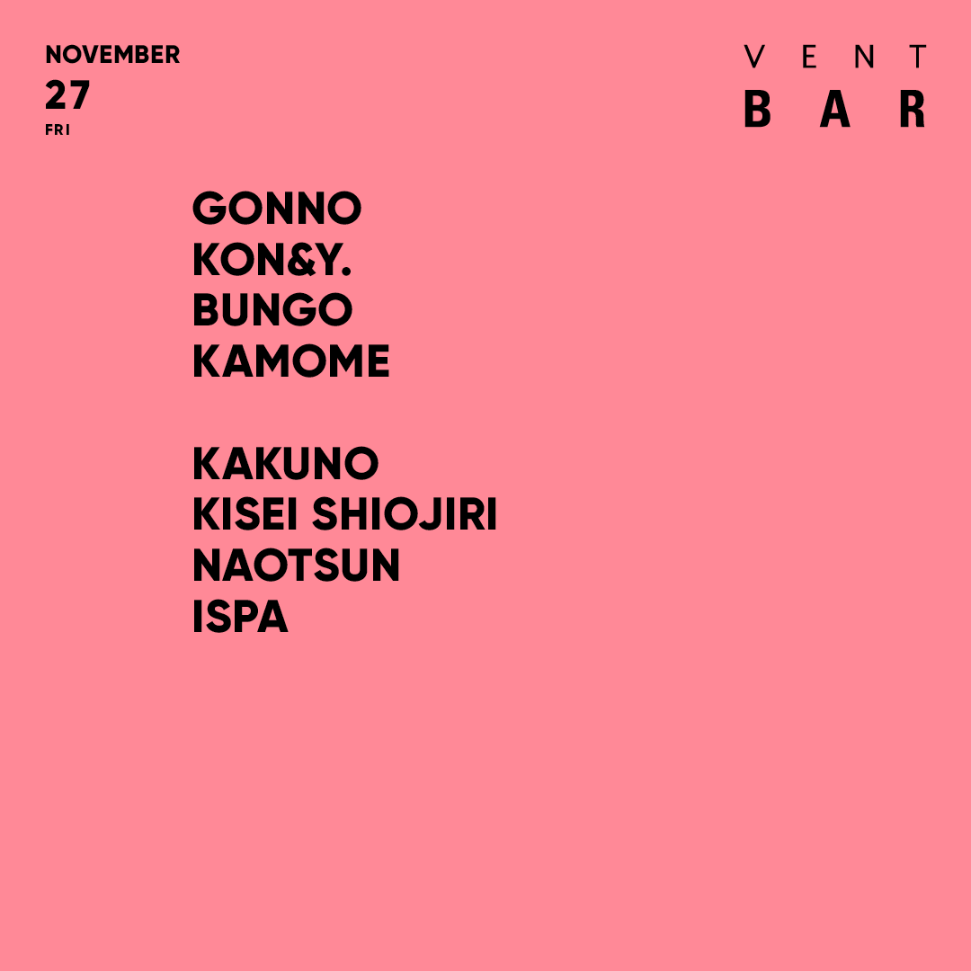 【 11月27日のVENT BARにGONNO、KON & Y.、Bungo、Kamomeが登場 】