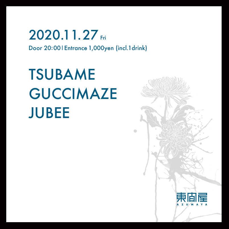 2020.11 27 NOV Azumaya -Friday- CROSSOVER 0 Shares Facebook Twitter google Line DATE: 2020-11-27 FRI OPEN: 20:00 VENUE: PRICE: Entrance 1,000yen(incl. 1drink) LINE UP: TSUBAME GUCCIMAZE JUBEE