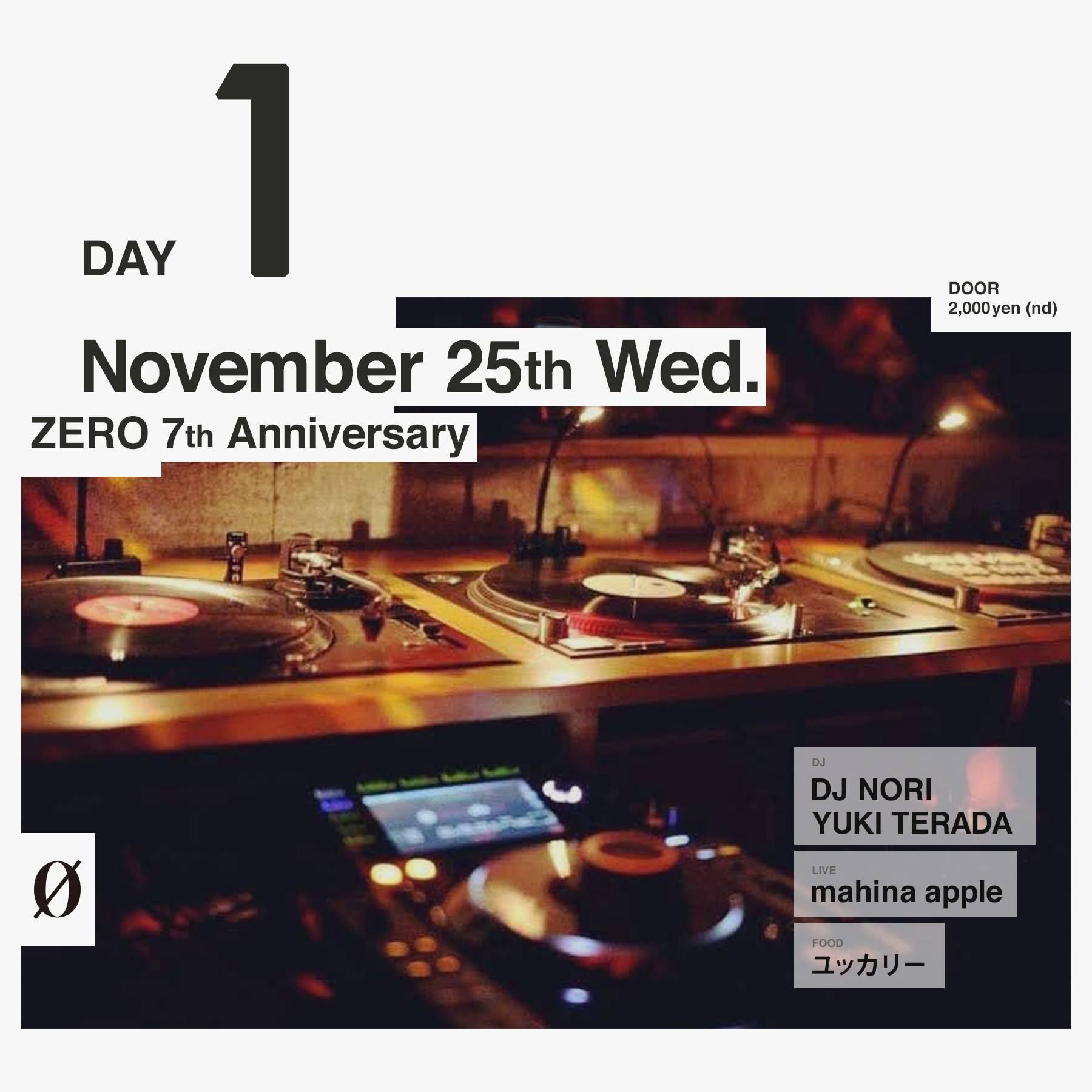 11月25日(水)〜11月28日(土)の4日間、時間を短縮して『ZERO 7th Anniversary Party』を開催させて頂きます。