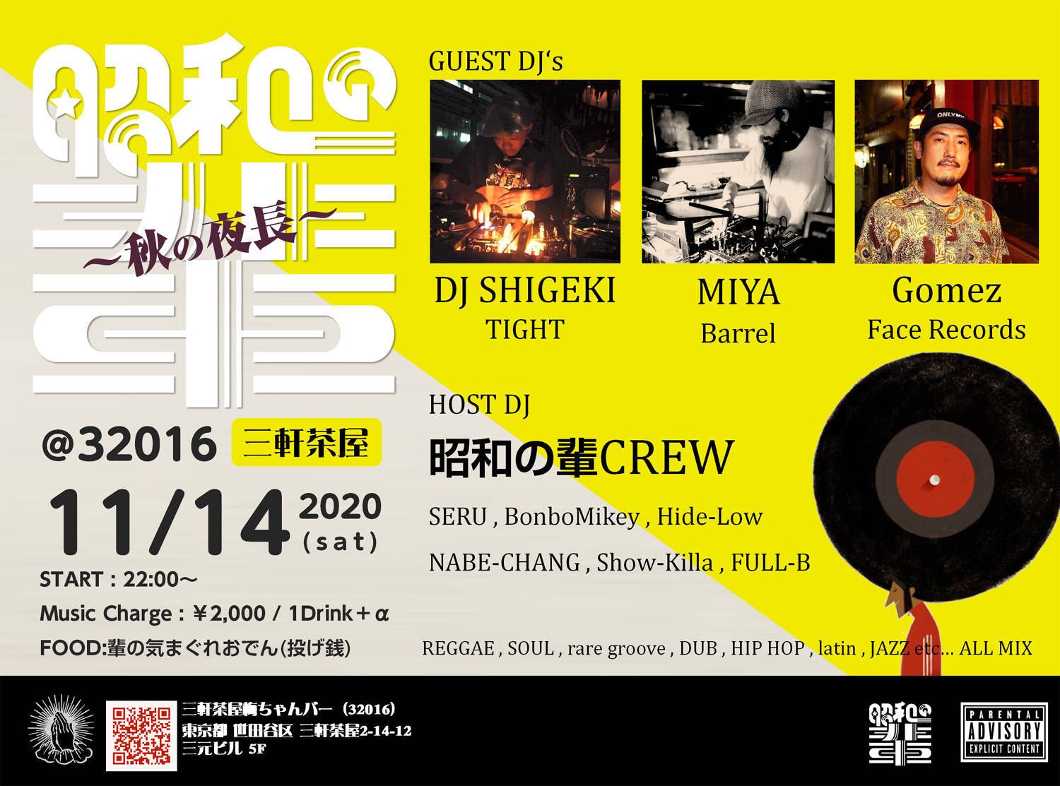 をGuest DJに迎え、極上かつ濃厚なREGGAE、SOUL、rare groove、DUB、HIP HOP、latin、jazz etc ジャンルを超え、最高の選曲家の音と輩の気まぐれおでんと梅ちゃんバーセレクトの日本酒で秋の夜長を楽しめるかと思います!
