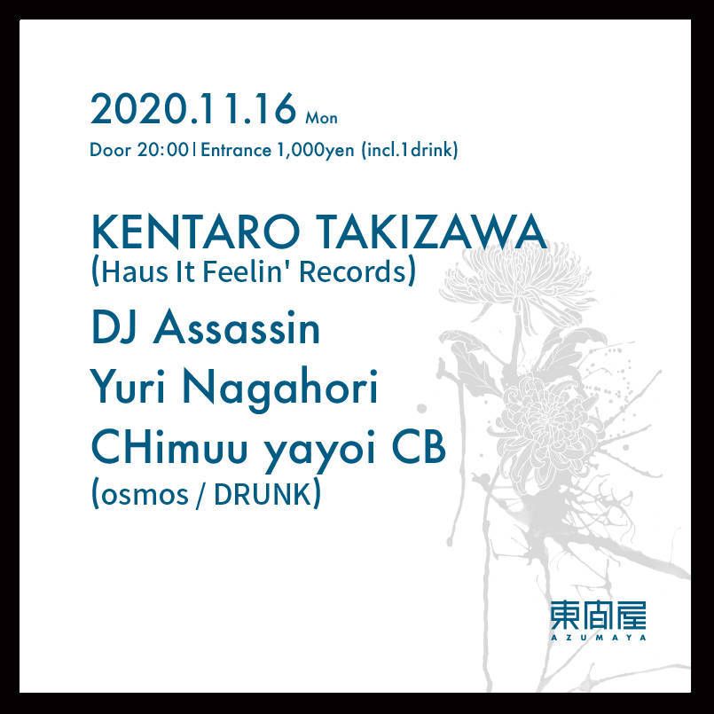 2020.11 16 NOV Azumaya -Monday- HOUSE 0 Shares Facebook Twitter google Line DATE: 2020-11-16 MON OPEN: 20:00 VENUE: PRICE: Entrance 1,000yen(incl. 1drink) LINE UP: KENTARO TAKIZAWA (Haus It Feelin' Records) DJ Assassin Yuri Nagahori CHimuu yayoi CB (osmos / DRUNK)