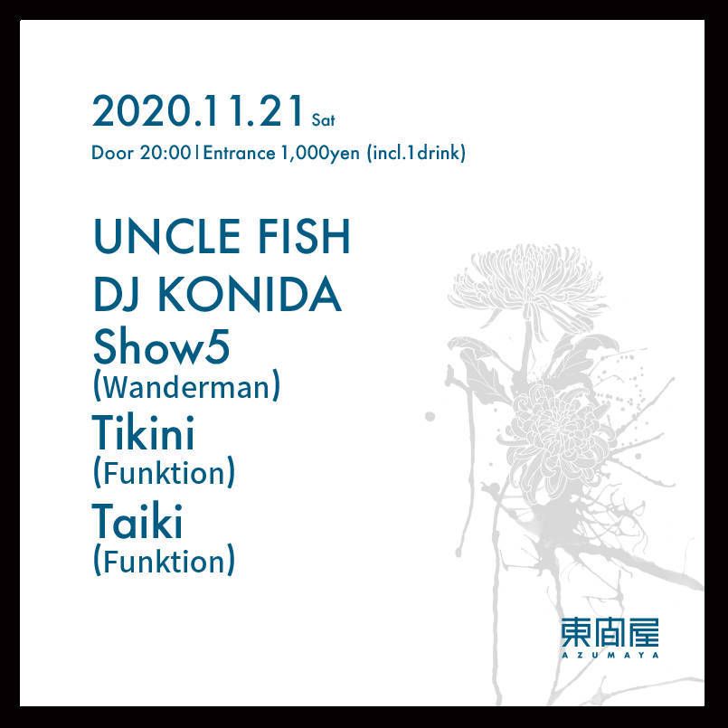 2020.11 21 NOV Azumaya -Saturday HOUSE CROSSOVER 0 Shares Facebook Twitter google Line DATE: 2020-11-21 SAT OPEN: 20:00 VENUE: PRICE: Entrance 1,000yen(incl. 1drink) LINE UP: UNCLE FISH DJ KONIDA Show5 (Wanderman) Tikini (Funktion) Taiki (Funktion)