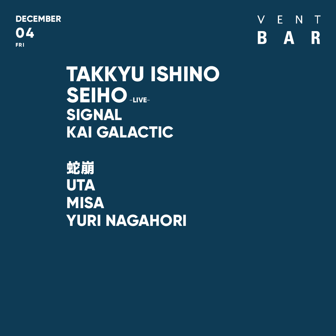 石野卓球、SEIHO、SIGNAL、Kai Galacticが、12月04日のVENT BARに登場!