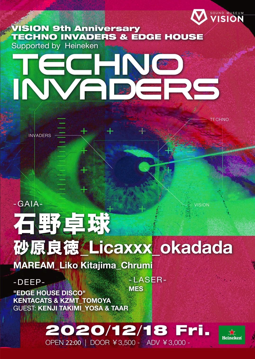 VISION 9th Anniversary TECHNO INVADERS & EDGE HOUSE Supported by Heineken
