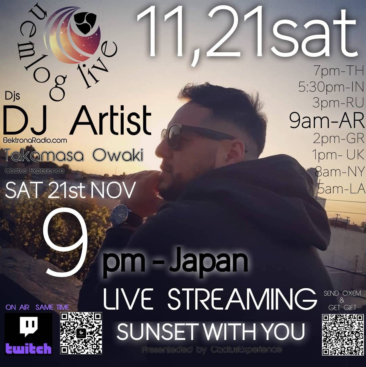①イメージ画像の右下のQRコードのNEMアドレスに0XEM送金で、DJ ArtistのオリジナルPVのダウンロードコードをゲット