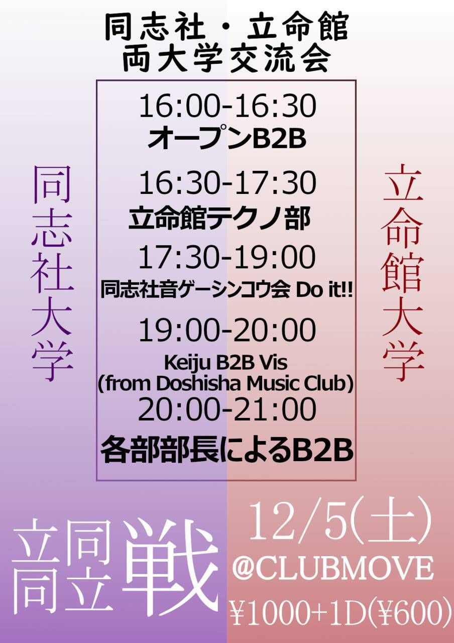 立命館テクノ部、同志社音楽研究会、同志社音ゲーシンコウ会 Do it!!によるDJイベントです。