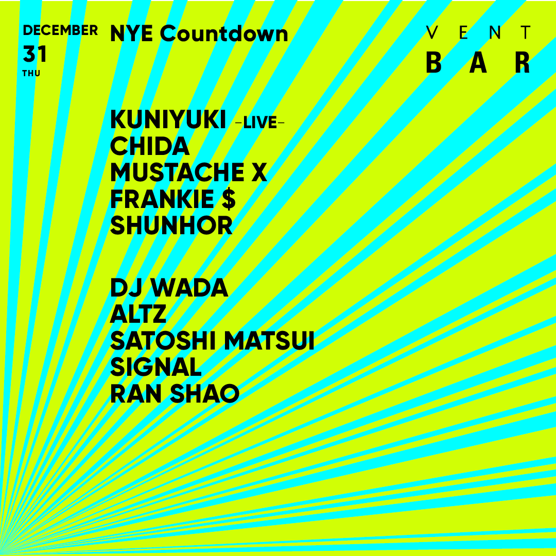 【 超豪華カウントダウン!日本が世界に誇るアクトが集結。Kuniyuki、CHIDA、DJ WADA、Altzらが12/31のVENT BARに登場。 】