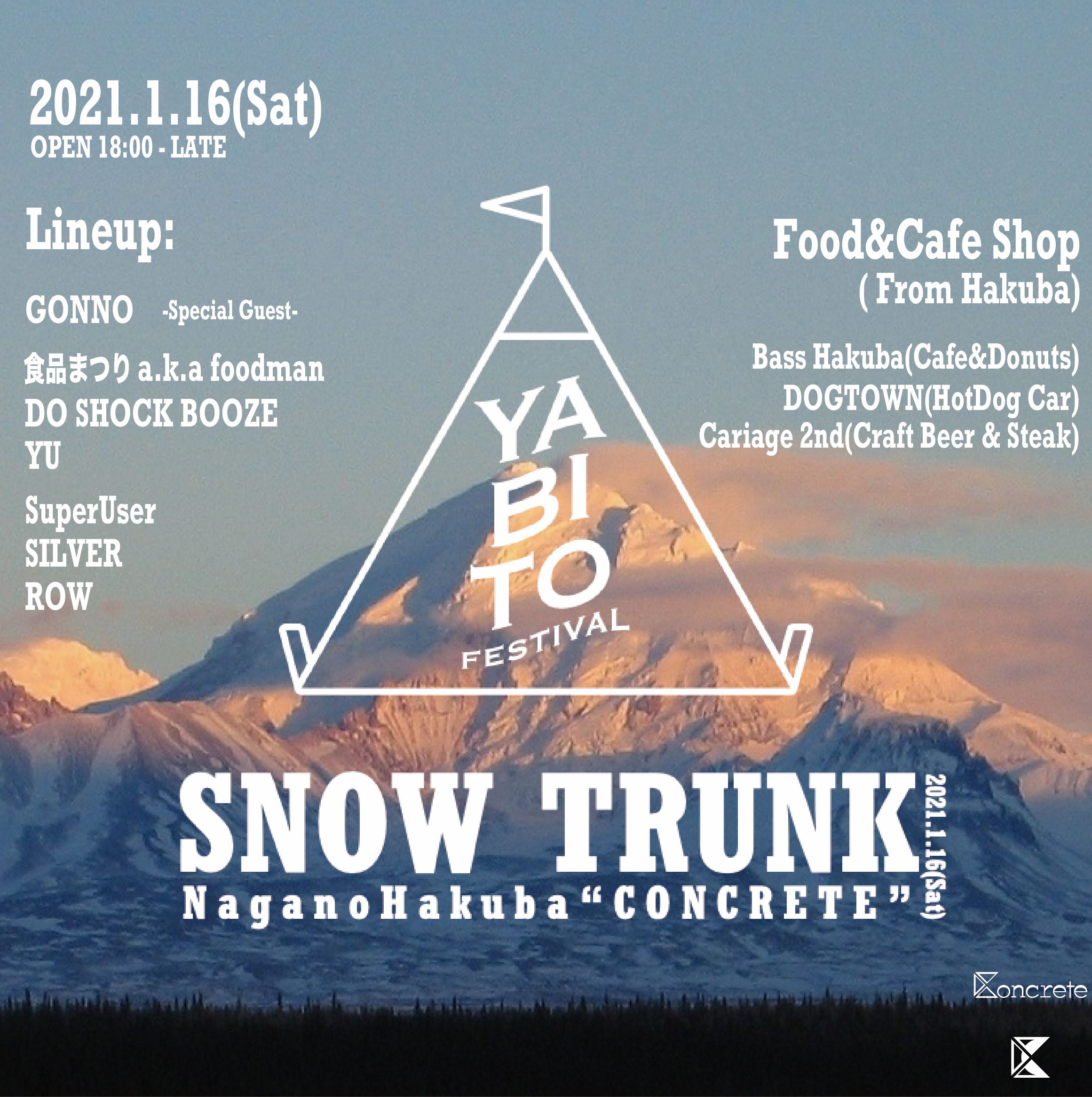 ヤビト主催、長野県白馬村を舞台にした音楽イベント"SNOW TRUNK"が今シーズンもCONCRETEにて開催。