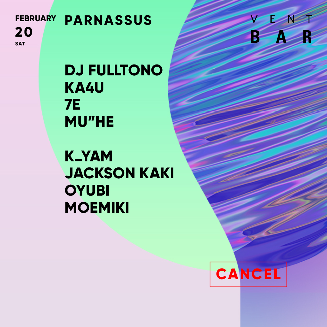“PARNASSUS”は、レフトフィールド・ダンスミュージックによりダンスの普遍性と多様性を追求することを目的に始動したパーティー。第一回はベースミュージック回としてKEIHIN、7eなどエッジィなDJを迎えて神宮前Bonoboで開催され、クラブ休業期間にはストリーミングプログラムのキュレーションを行うなど活動を続けてきた。今回は関西からジューク/フットワークの第一人者DJ Fulltonoと、関西最恐ブレイクコアパーティー”MIDI_sai”の主宰KA4Uの2人をゲストに招聘し開催する。