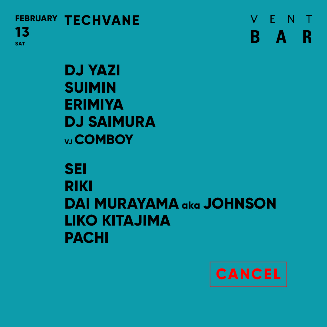 数々の第一線で活躍するテクノアーティストを招聘してきたTECHVANEが2021年もスタートし2月13日に開催する。TECHVANEはDJ SAIMURAが中心となって開催してきたテクノパーティーの名称及びオーガナイズチームの総称だ。過去にはChris Liebing、Tommy Four Seven、REBEKAH、Lucy等の海外アーティストを招聘してイベントを開催してきた。