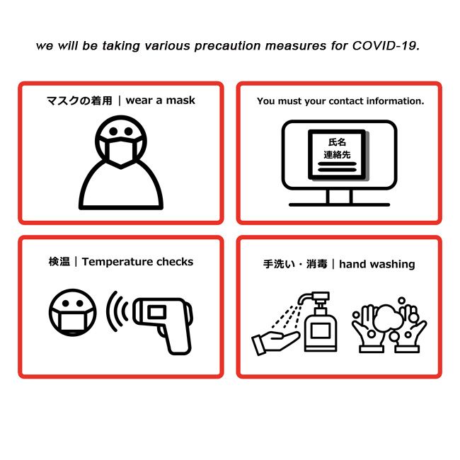 ※マスク/ 連絡先明記 / 検温 / 必須にて、入店時に確認させて頂きます。