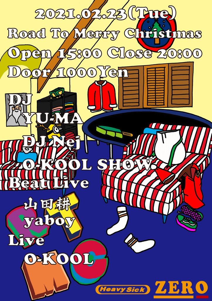 2021.02 23 FEB Road To Merry Christmas HIPHOP REGGAE TRAP BREAKBEATS CROSSOVER 0 Shares Facebook Twitter google Line DATE: 2021-02-23 TUE OPEN: 15:00 VENUE: PRICE: [DOOR]1000YEN LINE UP: ■DJ YU-MA DJ Nej O-KOOL SHOW ■Beat Live 山田耕 yaboy ■Live O-KOOL 【新型コロナウィルス防止策として】 ※入場人数制限をしております。 ※マスク/ 連絡先明記 / 検温 / 必須にて、入店時に確認させて頂きます。 ご来店の際は【heavysick ZERO新型コロナウイルス・対策事項】を必ずご確認ください。 [HP]http://www.heavysick.co.jp/zero/ 山田耕 Sound Cloud BeatTribe · Beat Tribe Vol.1 - 90s hiphop REMIX - yaboy Sound Cloud 37 Chambers Japan · Yaboy Remix